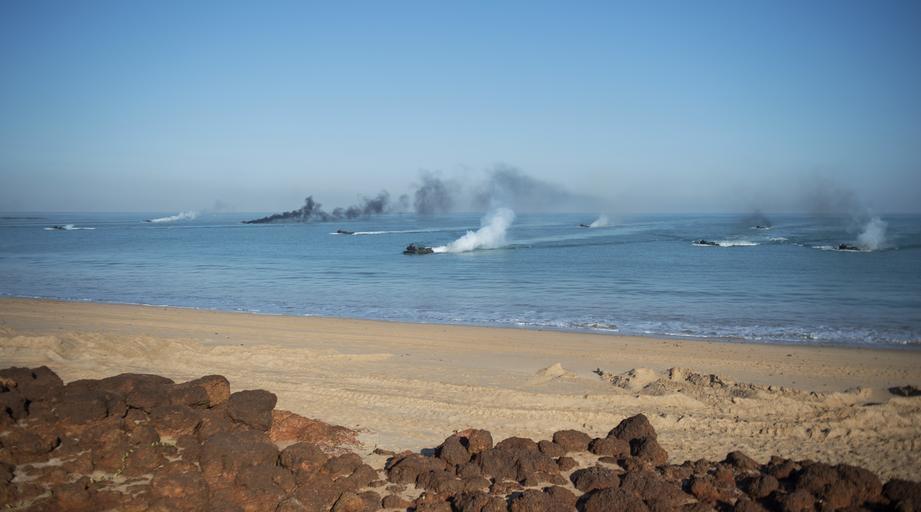MAKE A MEME View Large Image Marines and Australian Army Amphibious Assault 150711-N-NI474-011.jpg en Assault amphibious vehicles assigned to the 31st Marine Expeditionary Unit transit toward Gold Beach for an amphibious assault during Talisman Sabre 2015 at Fog Bay ...