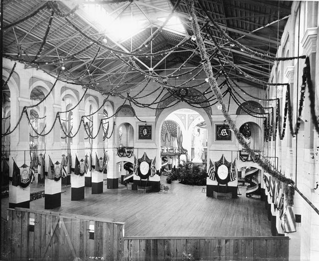 Keywords: smithsonian institution smithsonianinstitution ball inauguration president garfield arthur museum america democracy bunting hall patriotic streamers 1881 innaugral decorated flags exhibition hall exhibitionhall lights hanging garlend arch industrial buildings industrialbuildings decorarions times of old timesofold a&i ai arts industries building mall smithsonian institution archives smithsonianinstitutionarchives blackandwhite monochrome indoor black and white Description: In the United States National Museum Building, now known as the Arts and Industries Building, a view of the North Hall looking towards the Rotunda with the Statue of America facing the Hall. The building is decorated for the March 4, 1881, inaugural ball of James A. Garfield and Chester A. Arthur, the first public use of the new museum building. Creator/Photographer: Unidentified photographer Medium: Black and white photographic print Dimensions: 8 in x 10 in Date: 1881 Persistent URL: siarchives.si.edu/collections/siris_sic_10539 Repository: Smithsonian Institution Archives Accession number: 19070 Description: In the United States National Museum Building, now known as the Arts and Industries Building, a view of the North Hall looking towards the Rotunda with the Statue of America facing the Hall. The building is decorated for the March 4, 1881, inaugural ball of James A. Garfield and Chester A. Arthur, the first public use of the new museum building. Creator/Photographer: Unidentified photographer Medium: Black and white photographic print Dimensions: 8 in x 10 in Date: 1881 Persistent URL: siarchives.si.edu/collections/siris_sic_10539 Repository: Smithsonian Institution Archives Accession number: 19070 |
