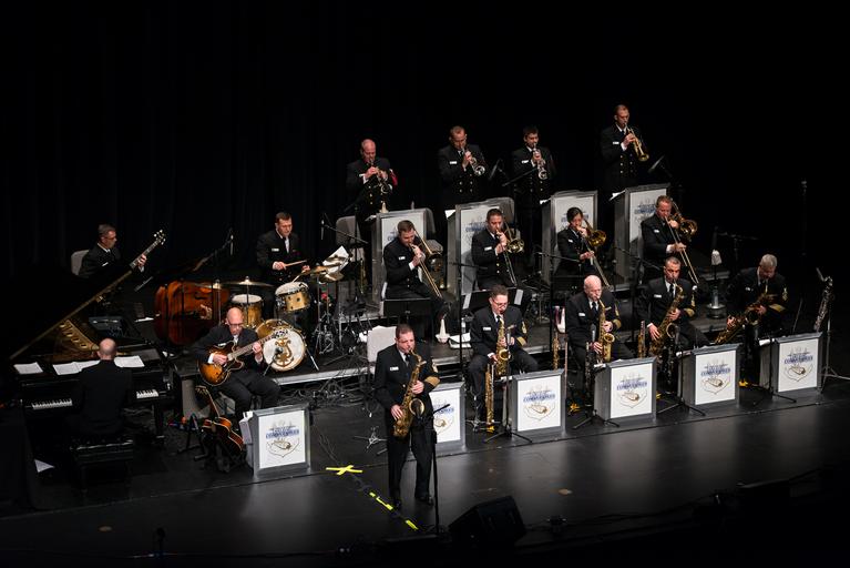 Keywords: music outreach people hays kan. kan united states unitedstates HAYS, Kan. (Oct. 28, 2016) The U.S. Navy Band Commodores jazz ensemble performs at Fort Hays State University's Beach/Schmidt Performing Arts Center in Hays, Kansas. The Navy Band performed in seven states during an 18-city, 2,500-mile national tour, connecting communities across the United States to their Navy. (U.S. Navy photo by Chief Petty Officer Adam Grimm/Released) HAYS, Kan. (Oct. 28, 2016) The U.S. Navy Band Commodores jazz ensemble performs at Fort Hays State University's Beach/Schmidt Performing Arts Center in Hays, Kansas. The Navy Band performed in seven states during an 18-city, 2,500-mile national tour, connecting communities across the United States to their Navy. (U.S. Navy photo by Chief Petty Officer Adam Grimm/Released) |