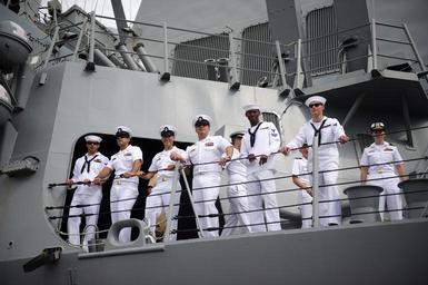 | Keywords: U.S. Sailors assigned to the guided-missile destroyer USS Michael Murphy (DDG 112) stand by as the ship leaves Joint Base Pearl Harbor-Hickam, Hawaii, for an independent deployment to the western Pacific Ocean 141020-N-QG393-030.jpg en U S Sailors assigned to the guided-missile destroyer USS Michael Murphy DDG 112 stand by as the ship leaves Joint Base Pearl Harbor-Hickam Hawaii for an independent deployment to the western Pacific Ocean Oct 20 2014 The Murphy was scheduled to conduct goodwill activities with partner nations along with various presence operations during the ship's first operational forward deployment 2014-10-20 MC2 Tiarra Fulgham http //www defenseimagery mil/imageRetrieve action guid 3e2b0974a172d28779d978441bc06f9ff68af828 t 2 Public domain photograph from defenseimagery mil http //www defenseimagery mil/imagery html guid 3e2b0974a172d28779d978441bc06f9ff68af828 141020-N-QG393-030 2014-10-22 Joint Base Pearl Harbor-Hickam PD-USGov-Military-Navy 2014 in Pearl Harbor Aboard USS Michael Murphy DDG-112 USS Michael Murphy DDG-112 at Pearl Harbor Images from DoD uploaded by Fæ |