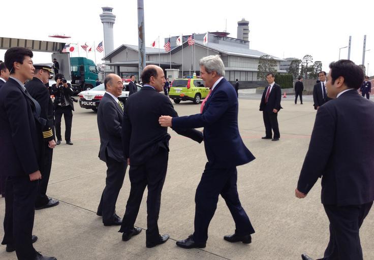 Keywords: U.S. Secretary of State John Kerry is greeted by John Roos, the U.S. Ambassador to Japan, after arriving at Haneda International Airport in Tokyo, Japan, on April 14, 2013.jpg en U S Secretary of State John Kerry is greeted by John Roos the U S Ambassador to Japan after arriving at Haneda International Airport in Tokyo Japan on April 14 2013 State Department photo/ Public Domain 2013-04-14 13 40 23 http //www flickr com/photos/statephotos/8646625899/sizes/o/in/photostream/ U S Department of State 35 557 139 78533333333 U S Department of State http //flickr com/photos/9364837 N06/8646625899 2013-04-14 08 50 20 United States Government Work PD-USGov Uploaded with UploadWizard John Kerry in 2013 John Roos in 2013 |
