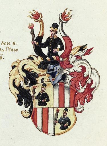 Keywords: UBHD Cod Sal IX 58 039v Prandter.jpg Wappen aus dem Wappenbuch des Hofpfalzgrafen Franz Rasso Gotthardt Entstanden in Süddeutschland Passau Universitätsbibliothek Heidelberg Cod Sal IX 58 <br />Wappen Hanns Prandter Bürger und Gastgeb zu Passau bewilligt 8 April 1598 http //digi ub uni-heidelberg de/diglit/salIX58 after 1597 1623 “1631 Franz Rasso Gotthardt PD-old-100 Wappenbuch der Hofpfalzgrafen Coats of arms of families of Germany - P Prandter Torches in heraldry Men in crest Fire in crest Men in heraldry Bull horns in crest Argent gules Or sable in heraldry Quarterly shields Paly of 4 gules and argent Paly of 4 argent and gules |
