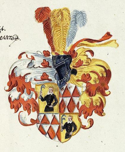 Keywords: UBHD Cod Sal IX 58 070r Gapruckhner.jpg Wappen aus dem Wappenbuch des Hofpfalzgrafen Franz Rasso Gotthardt Entstanden in Süddeutschland Passau Universitätsbibliothek Heidelberg Cod Sal IX 58 <br />Wappen Adam Gapruckhner Burger und Lederer von Lanndtshuet Landshut im Lanndts Bayrn gebierdtig bewilligt 26 November 1598 http //digi ub uni-heidelberg de/diglit/salIX58 after 1597 1623 “1631 Franz Rasso Gotthardt PD-old-100 Wappenbuch der Hofpfalzgrafen Coats of arms of families of Germany - G Gapruckhner Coats of arms from Landshut Men in heraldry Feathers in crest Fusilly shields Argent gules Or in heraldry Quarterly shields Hooks in heraldry |