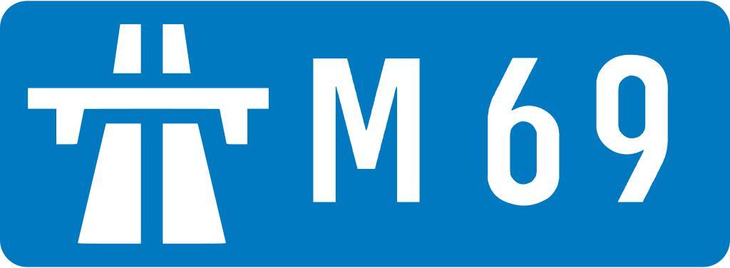 Keywords: UK-Motorway-M69.svg Motorway badge for the M69 motorway Own 2007-05-06 User Max Naylor British motorway plaques M69 motorway 69 number
