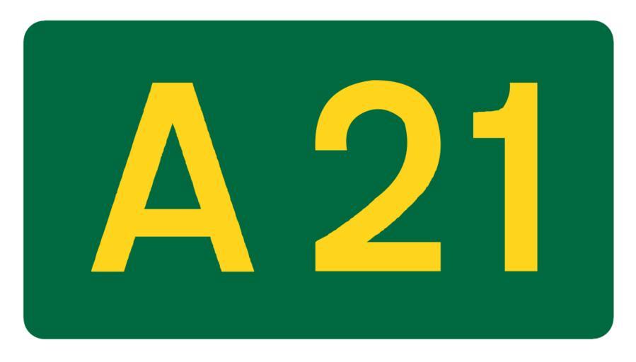Keywords: UK road A21.svg en A21 own Mauls date Diagrams of route signs of the United Kingdom 21 number