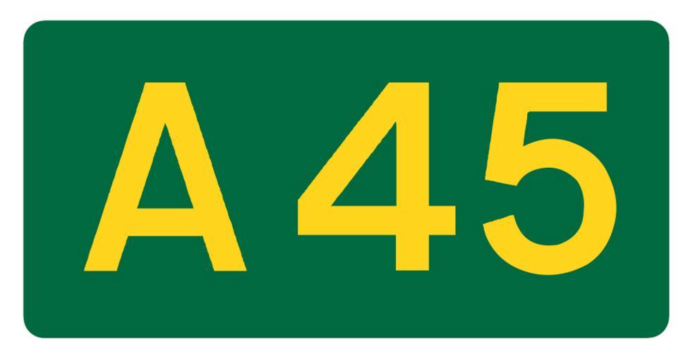 Keywords: UK road A45.svg en UK road number patch own Mauls Diagrams of route signs of the United Kingdom 45 number