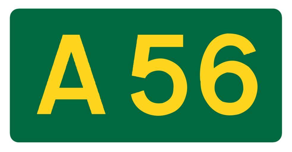 Keywords: UK road A56.svg en UK road number patch Own Mauls Diagrams of route signs of the United Kingdom 56 number A56 road England