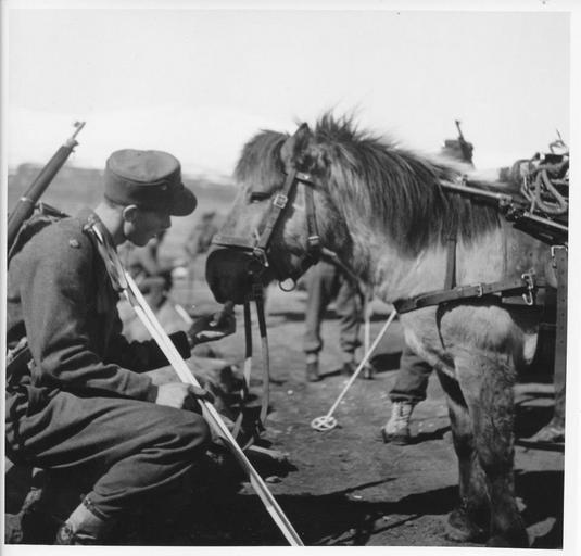Keywords: blackandwhite monochrome black and white Katrin Valdimarsdottir er rådgiver i Seksjon for papirdepot og arkivbeskrivelse. Hennes favorittbilde er fra Island, hvor hun selv kommer fra. ”En norsk soldat og en islandshest” I 1941 ble en norsk flyskvadron under britisk kontroll, med betegnelsen NO 330 Squadron, opprettet på Island. Skvadronens hovedbase ”Corbett Camp” lå ved Fossvogur, noen få kilometer fra Reykjaviks sentrum. På grunn av bostedsmangel ble 28 såkalte ”Nissen-hytter” reist i Corbett Camp. De var av bølgeblikk og var både trekkfulle og kalde. Mitt første ønske var å prøve å finne et bilde av en slik ”hytte"/brakke (braggi på islandsk), både fordi at brakkene fikk en stor rolle i Reykjaviks bolighistorie etter krigen og at jeg husker dem godt fra min oppvekst i Reykjavík. Men ved gjennomgang av fotografiene i NTBs krigsarkiv ble det ikke et bilde av en ”Nissen-hytte” som fanget min oppmerksomhet, men et bilde av en norsk soldat og en islandshest. Det var nemlig ikke bare Marinens flygevåpen som kom til Island, norske hæravdelinger ble også stasjonert der under krigen. De patruljerte i fjellene rundt Akureyri (på Nord-Island) og Búðareyri (på Øst-Island). Ifølge teksten bak på bildet skulle soldatene”… forberede seg for den dag deres skiferdighet og erfaring i vinterkrig skulle settes inn i kampen for Norges frigjøring.” Ved øvelsene brukte nordmennene de ”raske og sterke islandske ponniene” som ”kløvhester”. Bildet viser en norsk soldat som gir en brødbit til en islandshest. Mannen og hesten ser ut til å ha det fint sammen, og vi ser at soldaten holder i hvite skistaver. Om brødbiten er en belønning etter en øvelsestur i fjellet eller noe godt før øvelsen begynner er ikke godt å si. Bildet ble tatt 18.8.1943 og er å finne i NTBs krigsarkiv RA/PA-1209/U/Ua/L0003 Katrin Valdimarsdottir er rådgiver i Seksjon for papirdepot og arkivbeskrivelse. Hennes favorittbilde er fra Island, hvor hun selv kommer fra. ”En norsk soldat og en islandshest” I 1941 ble en norsk flyskvadron under britisk kontroll, med betegnelsen NO 330 Squadron, opprettet på Island. Skvadronens hovedbase ”Corbett Camp” lå ved Fossvogur, noen få kilometer fra Reykjaviks sentrum. På grunn av bostedsmangel ble 28 såkalte ”Nissen-hytter” reist i Corbett Camp. De var av bølgeblikk og var både trekkfulle og kalde. Mitt første ønske var å prøve å finne et bilde av en slik ”hytte"/brakke (braggi på islandsk), både fordi at brakkene fikk en stor rolle i Reykjaviks bolighistorie etter krigen og at jeg husker dem godt fra min oppvekst i Reykjavík. Men ved gjennomgang av fotografiene i NTBs krigsarkiv ble det ikke et bilde av en ”Nissen-hytte” som fanget min oppmerksomhet, men et bilde av en norsk soldat og en islandshest. Det var nemlig ikke bare Marinens flygevåpen som kom til Island, norske hæravdelinger ble også stasjonert der under krigen. De patruljerte i fjellene rundt Akureyri (på Nord-Island) og Búðareyri (på Øst-Island). Ifølge teksten bak på bildet skulle soldatene”… forberede seg for den dag deres skiferdighet og erfaring i vinterkrig skulle settes inn i kampen for Norges frigjøring.” Ved øvelsene brukte nordmennene de ”raske og sterke islandske ponniene” som ”kløvhester”. Bildet viser en norsk soldat som gir en brødbit til en islandshest. Mannen og hesten ser ut til å ha det fint sammen, og vi ser at soldaten holder i hvite skistaver. Om brødbiten er en belønning etter en øvelsestur i fjellet eller noe godt før øvelsen begynner er ikke godt å si. Bildet ble tatt 18.8.1943 og er å finne i NTBs krigsarkiv RA/PA-1209/U/Ua/L0003 |