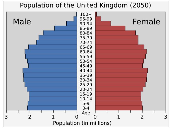 | Keywords: UKpop2050.svg translate yes en 2050 population pyramid of the United Kingdom from UN estimates World Population Prospects http //esa un org/unpd/wpp/Excel-Data/population htm The 2012 Revision 2014-08-04 own Delphi234 cc-zero Uploaded with UploadWizard Population pyramids of the United Kingdom |