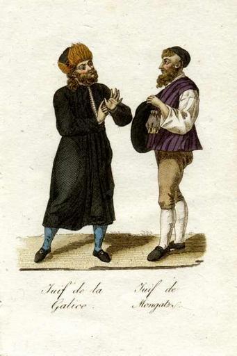 | Keywords: Ukrainian Jews from Galicia (left) and Mukachevo (right), 1821.jpg en Traditional dress of Jews from western Ukraine - Jew from Galicia Lviv / Ternopil area of western Ukraine and Jew from Mukachevo former Mongatz / Munkacs in Zakarpattia Transcarpathian region of westernmost Ukraine Postcard of 1821 uk Єв ей Галичини зліва та єв ей з укачева на Зака патті зп ава Т адиційний одяг єв еїв західної Ук аїни Листівка 1821 оку Sejny Foundation - http //pogranicze sejny pl/centrum/pocztowki-list php Sfind tytul Swarunki pocztowki session_id 01fd603e3cc36afeda9635414914a148 Unknown painter early 19 th cen 1821 Jewish people of Ukraine Jews in art History of Galicia Central Europe Jews of Galicia Hasidic Jews Postcards of people in Ukraine Historic Jewish communities Fur hats in art Jewish in Zakarpattia Oblast PD-old |