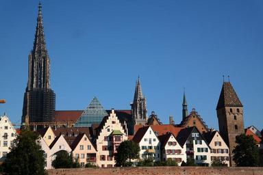 Keywords: ulm city city view historically historic old town old town münster ulm cathedral building architecture outlook view home homes sky church steeple roofs city panorama panorama spire city wall metzgerturm glass pyramid library