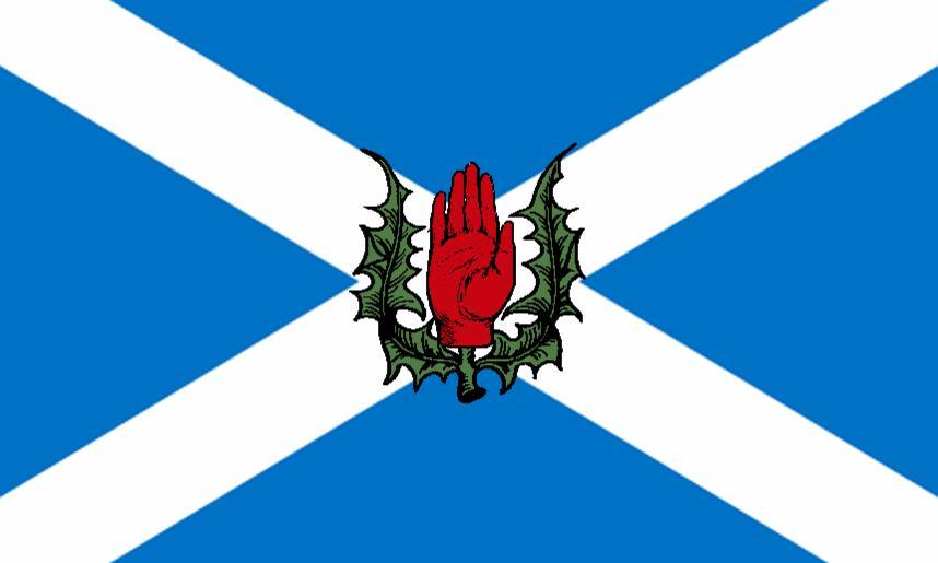 Keywords: Ulster Scots flag.gif flag Ulster Scots flag Ulster Scots banner Own N Burns 2008-09-01 Proposed Ulster Scots flag featuring the Red Hand of Ulster centred on the stalk leaves of a thistle mounted on the St Andrews saltire Insignia Blue green red white flags Flags of ethnic groups Flags of Northern Ireland Flags with hands Flags with plants Flags with centered oblique crosses GIF flags Ulster Scots Scots-Irish flags |