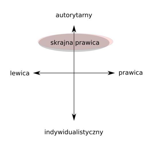 Keywords: Ultraprawica.svg pl Położenie skrajnej prawicy na schemacie dwuwymiarowym lewica-prawica autorytarny-indywidualistyczny Na podstawie J Steiner Demokracje europejskie Rzeszów 1993 s 83 own Mat86 2009-07-02 Political compass