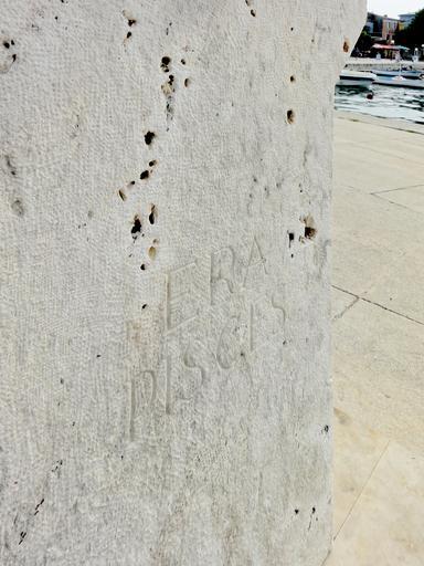 | Keywords: Umag Era pisces 3.JPG en Memorial Stone at the marina in croatian town Umag; Inscription at the back ERA PISCES de Gedenkstein im Hafen der kroatischen Stadt Umag; Inschrift auf der Rückseite ERA PISCES own <span style font-family Segoe Script; text-shadow gray 0 1em 0 1em 0 2em; >Tommes</span> 2015-08-08 45 4339 13 5211 Cc-zero Umag Istria County Monuments and memorials in Croatia |