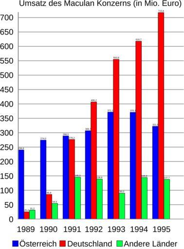 Keywords: Umsatz Maculan.svg Inkscape de Umsatz des Maculan Konzerns von 1989 bis 1995 en Turnover of the Maculan group from 1989 to 1995 Maculan Alexander Mein Fall Traum und Alptraum eines Unternehmers Wien 1997 Page 178 Raw Data 2009-04-20 Roland Lehner Economic bar charts |