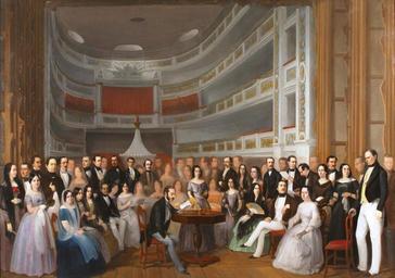 Keywords: Una lectura de Ventura de la Vega (1845).jpg La obra representa al escritor y dramaturgo Ventura de la Vega 1807-1865 leyendo una de sus obras ante un numeroso público en el Teatro del Príncipe de la ciudad de Madrid que actualmente recibe el nombre de Teatro Español circa 1846 1847 oil on canvas Size cm 208 146 Institution Museo del Prado Depositado en el Institution Museo del Romanticismo https //www museodelprado es/coleccion/obra-de-arte/ventura-de-la-vega-leyendo-una-obra-en-el-teatro/ac242423-4a9f-46ba-9a8f-9e37baad4862 accession number P03303 https //content cdnprado net/imagenes/Documentos/imgsem/ac/ac24/ac242423-4a9f-46ba-9a8f-9e37baad4862/59048017-fbc4-4920-9b1b-7ac60aeaf883 jpg PD-old-100 Ventura de la Vega Male portrait paintings by Antonio María Esquivel Female portrait paintings by Antonio María Esquivel Paintings by Antonio María Esquivel in the Prado Museum Spanish 19th-century paintings in the Museo del Prado Paintings by Antonio María Esquivel in the Museo del Romanticismo de Madrid Female portrait paintings in the Museo del Romanticismo de Madrid Male portrait paintings in the Museo del Romanticismo de Madrid Paintings in the Museo del Romanticismo de Madrid HombreDHojalata 1840s paintings in Spain |