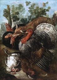 Keywords: Una zorra devorando aves, atribuido a Giacomo Nani (Museo del Prado).jpg La obra representa a una zorra devorando a unas aves Siglo XVIII oil on canvas Size cm 94 130 Institution Museo del Prado Depositado en el Institution Palacio Real de Madrid https //www museodelprado es/coleccion/obra-de-arte/una-zorra-devorando-aves/f3b77e03-fcd1-49d0-91c1-1d3cf0732302 searchid 501e48fd-dd09-370e-718b-3221ad52f0fc accession number P04337 https //content2 cdnprado net/imagenes/Documentos/imgsem/f3/f3b7/f3b77e03-fcd1-49d0-91c1-1d3cf0732302/fd8e0ee4-78a0-4e48-9b8f-2505b2acc9a2 jpg PD-old-100 18th-century paintings of animals Giacomo Nani 18th-century paintings in the Prado Museum 18th-century paintings in the Royal Palace of Madrid |