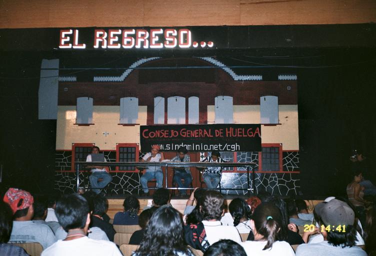 Keywords: UNAM Huelga CGH 1999-2000-04.jpg Reunión estudiantil durante la huelga en el Mexe Hidalgo México Photo taken in UNAM CU Mexico City Students conflict in 1999-2000 SPANISH Foto tomada en la UNAM CU Ciudad de México Durante la Huelga del CGH en la UNAM de los años 1999-2000 Photograph taken by me pictures taken in year 2000 User Gengiskanhg Huelga UNAM CGH 1999-2000 |