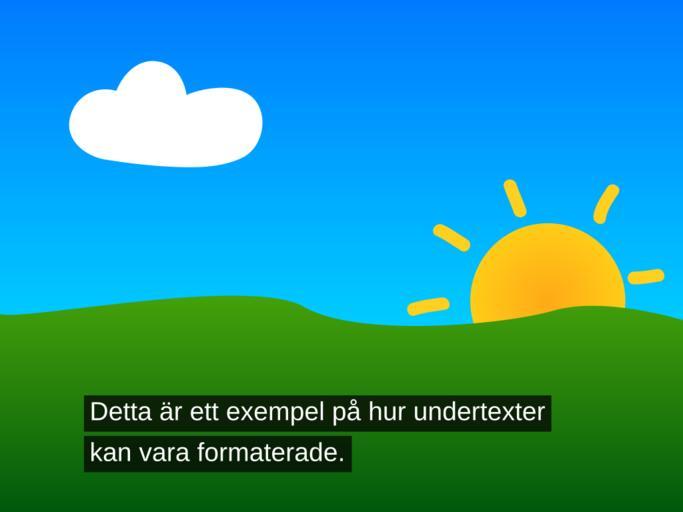 Keywords: Undertexter exempel1.svg en An example how captions may look in Swedish sv Ett exempel på hur undertexter ser ut own Sertion 2008-11-20 Subtitles