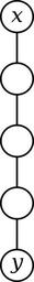 Keywords: Undirected chain.svg en Undirected chain of 5 nodes between a node labeled x and a node labeled y 2016-11-15 own A3nm other versions cc-zero Linear graphs