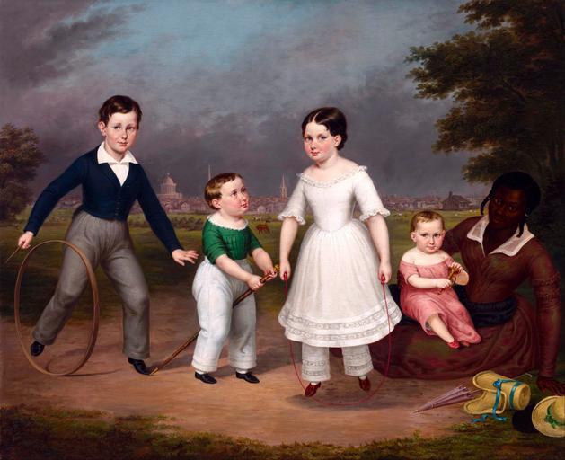 Keywords: Unidentified artist - Robert, Calvin, Martha and William Scott and Mila - Google Art Project.jpg The children of Dr William Anderson Scott 1813-1885 an Old School Presbyterian clergyman in New Orleans Louisiana and their nurse Mila or Elmira The spire of the First Presbyterian Church where Dr Scott was pastor is visible at the center of the city ™s skyline Tax records indicate that a slave Mila was gifted to Scott's wife Ann by her father in 1830 http //deyoung famsf org/blog/galleries-robert-calvin-martha-and-william-scott-and-mila-ca-1843-1845http //connection ebscohost com/c/articles/51700230/black-white-shades-gray-picturing-identity-robert-calvin-martha-william-scott-nurse-mila Unidentified 719508 artist American /collection/de-young-museum/artwork/robert-calvin-martha-and-william-scott-and-mila-unidentified-artist/728003/ Unidentified artist Painter /artist/unidentified-artist/7375297/ 7375297 /collection/de-young-museum/ de Young Museum 677086 http //www deyoungmuseum org/ 1/28/2012 1 14 15 AM /collection/de-young-museum/artwork/robert-calvin-martha-and-william-scott-and-mila-unidentified-artist/728003/ 1843 990 6 728003 False 1845 ca 1843-1845 /collection/de-young-museum/level/second-floor/725073/ Second Floor 3/24/2012 10 10 28 AM 2008 14 Painting 1840 1850 City New Orleans Louisiana United States w1193 x h990 in ca 1843-1845 False 1 22781774580336 Object /collection/de-young-museum/level/second-floor/725073/gallery-23/721251/ Gallery 23 robert-calvin-martha-and-william-scott-and-mila-unidentified-artist Robert Calvin Martha and William Scott and Mila r 1193 8 Gift of Margaret Clifton Boyd and Cynthia Hollister Nagel special url_id BwFpUGKgPO1O3Q PD-old-70 Google Art Project works by unknown artist Playing children in art Servants in art 1840s portrait paintings Slaves in art |