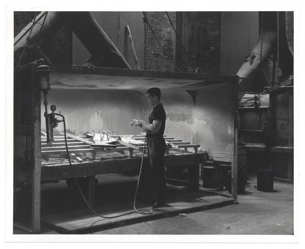Keywords: smithsonian institution smithsonianinstitution worker occupation job spray booth spraybooth hose pressure gauge pressuregauge solder factory j scott williams jscottwilliams archives of american art archivesofamericanart blackandwhite monochrome black and white Description: Shows the man in a factory setting working on two large tiles, pieces of J. Scott Williams' mural Man's conquest of the elemental forms of nature for the 1939 World's Fair. Williams, J. Scott (John Scott), 1877-1976 Creator/Photographer: Unidentified photographer Medium: Black and white photographic print Dimensions: 21 cm x 26 cm Date: not after 1939 Persistent URL: www.aaa.si.edu/collections/images/detail/j-scott-williams... Repository: Archives of American Art Collection: Federal Art Project, Photographic Division Collection, 19351942 - This collection, housed in the Archives of American Art, includes approximately twelve thousand photographs taken by the Federal Art Project Photographic Division, primarily in New York City, to document the activities of artists working on the Federal Art Project under the Work Projects Administration's Federal Project No. 1. Accession number: aaa_fedeartp14_3920 Description: Shows the man in a factory setting working on two large tiles, pieces of J. Scott Williams' mural Man's conquest of the elemental forms of nature for the 1939 World's Fair. Williams, J. Scott (John Scott), 1877-1976 Creator/Photographer: Unidentified photographer Medium: Black and white photographic print Dimensions: 21 cm x 26 cm Date: not after 1939 Persistent URL: www.aaa.si.edu/collections/images/detail/j-scott-williams... Repository: Archives of American Art Collection: Federal Art Project, Photographic Division Collection, 19351942 - This collection, housed in the Archives of American Art, includes approximately twelve thousand photographs taken by the Federal Art Project Photographic Division, primarily in New York City, to document the activities of artists working on the Federal Art Project under the Work Projects Administration's Federal Project No. 1. Accession number: aaa_fedeartp14_3920