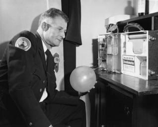 Keywords: florida state library and archives of florida statelibraryandarchivesofflorida unidentified police officers policeofficers law enforcement lawenforcement drunk driving drunkdriving harger drunkometer (breathalyzer) hargerdrunkometerbreathalyzer breathalyzers tallahassee tallahassee democrat (tallahassee, florida newspaper) tallahasseedemocrattallahasseefloridanewspaper leon county leoncounty 1950s uniforms sobriety testing equipment sobrietytestingequipment blackandwhite monochrome black and white Persistent URL: floridamemory.com/items/show/259851 Local call number: TD00045 Title: Unidentified police officer with a Harger "Drunkometer" breathalyzer in Tallahassee, Florida Date: 1953 Physical descrip: 1 photonegative - b&w - 4 x 5 in. Series Title: Tallahassee Democrat Collection Repository: State Library and Archives of Florida 500 S. Bronough St., Tallahassee, FL, 32399-0250 USA, Contact: 850.245.6700, Archives@dos.myflorida.com Persistent URL: floridamemory.com/items/show/259851 Local call number: TD00045 Title: Unidentified police officer with a Harger "Drunkometer" breathalyzer in Tallahassee, Florida Date: 1953 Physical descrip: 1 photonegative - b&w - 4 x 5 in. Series Title: Tallahassee Democrat Collection Repository: State Library and Archives of Florida 500 S. Bronough St., Tallahassee, FL, 32399-0250 USA, Contact: 850.245.6700, Archives@dos.myflorida.com |