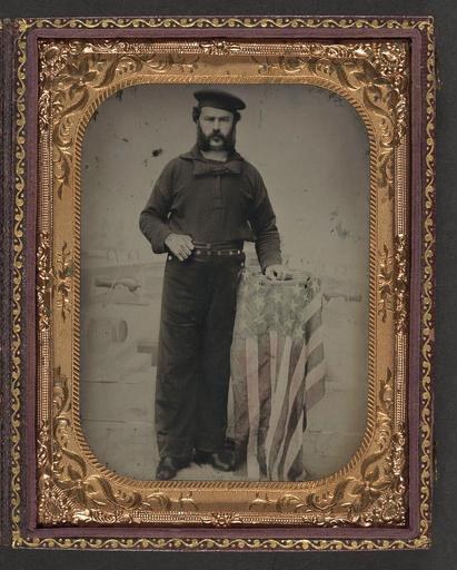 Keywords: library of congress libraryofcongress dc:identifier=http://hdl.loc.gov/loc.pnp/ppmsca.26931 dc:identifier=httphdllocgovlocpnpppmsca26931 xmlns:dc=http://purl.org/dc/elements/1.1/ xmlns:dc=httppurlorgdcelements11 civil war civilwar us civil war uscivilwar united states unitedstates soldier american american civil war americancivilwar uniform military people picture frame photo border [Unidentified sailor in Union uniform at American flag-draped table in front of painted backdrop showing Naval ship] [between 1861 and 1865] 1 photograph : quarter-plate tintype, hand-colored ; 11.8 x 9.5 cm (case) Notes: Title devised by Library staff. Case: Leather floral motif. Additional information in collections file. Gift; Tom Liljenquist; 2010; (DLC/PP-2010:105). Purchased from: Vin Caponi, Jr., Lawrence, N.Y., 2005. Purchased from: Vin Caponi, Jr., Lawrence, N.Y., 2005. Subjects: United States.--Army--People--1860-1870. Sailors--Union--1860-1870. Flags--American--1860-1870. Backdrops--1860-1870. United States--History--Civil War, 1861-1865--Military personnel--Union. Format: Portrait photographs--1860-1870. Tintypes--Hand-colored--1860-1870. Rights Info: No known restrictions on publication. Repository: Library of Congress, Prints and Photographs Division, Washington, D.C. 20540 USA, hdl.loc.gov/loc.pnp/pp.print Part Of: Ambrotype/Tintype filing series (Library of Congress) (DLC) 2010650518 Liljenquist Family collection (Library of Congress) (DLC) 2010650519 More information about this collection is available at hdl.loc.gov/loc.pnp/pp.lilj Persistent URL: hdl.loc.gov/loc.pnp/ppmsca.26931 Call Number: AMB/TIN no. 2078 [Unidentified sailor in Union uniform at American flag-draped table in front of painted backdrop showing Naval ship] [between 1861 and 1865] 1 photograph : quarter-plate tintype, hand-colored ; 11.8 x 9.5 cm (case) Notes: Title devised by Library staff. Case: Leather floral motif. Additional information in collections file. Gift; Tom Liljenquist; 2010; (DLC/PP-2010:105). Purchased from: Vin Caponi, Jr., Lawrence, N.Y., 2005. Purchased from: Vin Caponi, Jr., Lawrence, N.Y., 2005. Subjects: United States.--Army--People--1860-1870. Sailors--Union--1860-1870. Flags--American--1860-1870. Backdrops--1860-1870. United States--History--Civil War, 1861-1865--Military personnel--Union. Format: Portrait photographs--1860-1870. Tintypes--Hand-colored--1860-1870. Rights Info: No known restrictions on publication. Repository: Library of Congress, Prints and Photographs Division, Washington, D.C. 20540 USA, hdl.loc.gov/loc.pnp/pp.print Part Of: Ambrotype/Tintype filing series (Library of Congress) (DLC) 2010650518 Liljenquist Family collection (Library of Congress) (DLC) 2010650519 More information about this collection is available at hdl.loc.gov/loc.pnp/pp.lilj Persistent URL: hdl.loc.gov/loc.pnp/ppmsca.26931 Call Number: AMB/TIN no. 2078 |