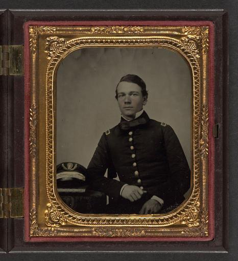 | Keywords: library of congress libraryofcongress dc:identifier=http://hdl.loc.gov/loc.pnp/ppmsca.27028 dc:identifier=httphdllocgovlocpnpppmsca27028 xmlns:dc=http://purl.org/dc/elements/1.1/ xmlns:dc=httppurlorgdcelements11 picture frame people indoor photo border [Unidentified sailor in Union master's uniform with Navy officer's hat] [between 1861 and 1865] 1 photograph : sixth-plate ambrotype, hand-colored ; 9.7 x 8.8 cm (case) Notes: Title devised by Library staff. Case: Berg, no. 3-95. Gift; Tom Liljenquist; 2010; (DLC/PP-2010:105). Purchased from: Regimental Headquarters, Falmouth, Va., 2004. Subjects: Sailors--Union--1860-1870. Military uniforms--Union--1860-1870. United States--History--Civil War, 1861-1865--Military personnel--Union. Format: Portrait photographs--1860-1870. Ambrotypes--Hand-colored--1860-1870. Rights Info: No known restrictions on publication. Repository: Library of Congress, Prints and Photographs Division, Washington, D.C. 20540 USA, hdl.loc.gov/loc.pnp/pp.print Part Of: Ambrotype/Tintype filing series (Library of Congress) (DLC) 2010650518 Liljenquist Family collection (Library of Congress) (DLC) 2010650519 More information about this collection is available at hdl.loc.gov/loc.pnp/pp.lilj Persistent URL: hdl.loc.gov/loc.pnp/ppmsca.27028 Call Number: AMB/TIN no. 2173 [Unidentified sailor in Union master's uniform with Navy officer's hat] [between 1861 and 1865] 1 photograph : sixth-plate ambrotype, hand-colored ; 9.7 x 8.8 cm (case) Notes: Title devised by Library staff. Case: Berg, no. 3-95. Gift; Tom Liljenquist; 2010; (DLC/PP-2010:105). Purchased from: Regimental Headquarters, Falmouth, Va., 2004. Subjects: Sailors--Union--1860-1870. Military uniforms--Union--1860-1870. United States--History--Civil War, 1861-1865--Military personnel--Union. Format: Portrait photographs--1860-1870. Ambrotypes--Hand-colored--1860-1870. Rights Info: No known restrictions on publication. Repository: Library of Congress, Prints and Photographs Division, Washington, D.C. 20540 USA, hdl.loc.gov/loc.pnp/pp.print Part Of: Ambrotype/Tintype filing series (Library of Congress) (DLC) 2010650518 Liljenquist Family collection (Library of Congress) (DLC) 2010650519 More information about this collection is available at hdl.loc.gov/loc.pnp/pp.lilj Persistent URL: hdl.loc.gov/loc.pnp/ppmsca.27028 Call Number: AMB/TIN no. 2173 |