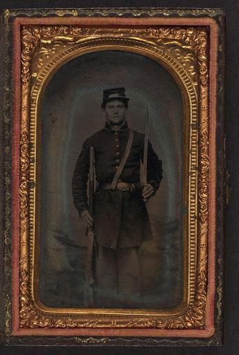 | Keywords: library of congress libraryofcongress dc:identifier=http://hdl.loc.gov/loc.pnp/ppmsca.27429 dc:identifier=httphdllocgovlocpnpppmsca27429 xmlns:dc=http://purl.org/dc/elements/1.1/ xmlns:dc=httppurlorgdcelements11 u.s. civil war uscivilwar american civil war americancivilwar the civil war thecivilwar civil war civilwar war between the states warbetweenthestates united states of america unitedstatesofamerica u.s.a. usa the union theunion union the north thenorth yankee yankees soldier gun musket sword saber sabre people picture frame photo border [Unidentified soldier in Union frock coat and forage cap with saber and musket] [between 1861 and 1865] 1 photograph : carte de visite tintype, hand-colored ; 9.6 x 6.3 cm (case) Notes: Title devised by Library staff. Case: Leather geometric interior with scroll embellishments. Gift; Tom Liljenquist; 2010; (DLC/PP-2010:105). Subjects: United States.--Army.--People--1860-1870. Soldiers--Union--1860-1870. Military uniforms--Union--1860-1870. Rifles--1860-1870. Daggers & swords--1860-1870. United States--History--Civil War, 1861-1865--Military personnel--Union. Format: Portrait photographs--1860-1870. Tintypes--Hand-colored--1860-1870. Rights Info: No known restrictions on publication. Repository: Library of Congress, Prints and Photographs Division, Washington, D.C. 20540 USA, hdl.loc.gov/loc.pnp/pp.print Part Of: Ambrotype/Tintype filing series (Library of Congress) (DLC) 2010650518 Liljenquist Family collection (Library of Congress) (DLC) 2010650519 More information about this collection is available at hdl.loc.gov/loc.pnp/pp.lilj Persistent URL: hdl.loc.gov/loc.pnp/ppmsca.27429 Call Number: AMB/TIN no. 2558 [Unidentified soldier in Union frock coat and forage cap with saber and musket] [between 1861 and 1865] 1 photograph : carte de visite tintype, hand-colored ; 9.6 x 6.3 cm (case) Notes: Title devised by Library staff. Case: Leather geometric interior with scroll embellishments. Gift; Tom Liljenquist; 2010; (DLC/PP-2010:105). Subjects: United States.--Army.--People--1860-1870. Soldiers--Union--1860-1870. Military uniforms--Union--1860-1870. Rifles--1860-1870. Daggers & swords--1860-1870. United States--History--Civil War, 1861-1865--Military personnel--Union. Format: Portrait photographs--1860-1870. Tintypes--Hand-colored--1860-1870. Rights Info: No known restrictions on publication. Repository: Library of Congress, Prints and Photographs Division, Washington, D.C. 20540 USA, hdl.loc.gov/loc.pnp/pp.print Part Of: Ambrotype/Tintype filing series (Library of Congress) (DLC) 2010650518 Liljenquist Family collection (Library of Congress) (DLC) 2010650519 More information about this collection is available at hdl.loc.gov/loc.pnp/pp.lilj Persistent URL: hdl.loc.gov/loc.pnp/ppmsca.27429 Call Number: AMB/TIN no. 2558 |