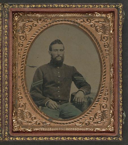 Keywords: library of congress libraryofcongress dc:identifier=http://hdl.loc.gov/loc.pnp/ppmsca.26945 dc:identifier=httphdllocgovlocpnpppmsca26945 xmlns:dc=http://purl.org/dc/elements/1.1/ xmlns:dc=httppurlorgdcelements11 picture frame people photo border round ancient [Unidentified soldier in Union infantry corporal's uniform sitting with arm resting on table] [between 1861 and 1865] 1 photograph : sixth-plate tintype, hand-colored ; 9.3 x 8.1 cm (case) Notes: Title devised by Library staff. Case: Rinhart, no. 137. Gift; Tom Liljenquist; 2010; (DLC/PP-2010:105). Subjects: United States.--Army--People--1860-1870. Soldiers--Union--1860-1870. Military uniforms--Union--1860-1870. United States--History--Civil War, 1861-1865--Military personnel--Union. Format: Portrait photographs--1860-1870. Tintypes--Hand-colored--1860-1870. Rights Info: No known restrictions on publication. Repository: Library of Congress, Prints and Photographs Division, Washington, D.C. 20540 USA, hdl.loc.gov/loc.pnp/pp.print Part Of: Ambrotype/Tintype filing series (Library of Congress) (DLC) 2010650518 Liljenquist Family collection (Library of Congress) (DLC) 2010650519 More information about this collection is available at hdl.loc.gov/loc.pnp/pp.lilj Persistent URL: hdl.loc.gov/loc.pnp/ppmsca.26945 Call Number: AMB/TIN no. 2093 [Unidentified soldier in Union infantry corporal's uniform sitting with arm resting on table] [between 1861 and 1865] 1 photograph : sixth-plate tintype, hand-colored ; 9.3 x 8.1 cm (case) Notes: Title devised by Library staff. Case: Rinhart, no. 137. Gift; Tom Liljenquist; 2010; (DLC/PP-2010:105). Subjects: United States.--Army--People--1860-1870. Soldiers--Union--1860-1870. Military uniforms--Union--1860-1870. United States--History--Civil War, 1861-1865--Military personnel--Union. Format: Portrait photographs--1860-1870. Tintypes--Hand-colored--1860-1870. Rights Info: No known restrictions on publication. Repository: Library of Congress, Prints and Photographs Division, Washington, D.C. 20540 USA, hdl.loc.gov/loc.pnp/pp.print Part Of: Ambrotype/Tintype filing series (Library of Congress) (DLC) 2010650518 Liljenquist Family collection (Library of Congress) (DLC) 2010650519 More information about this collection is available at hdl.loc.gov/loc.pnp/pp.lilj Persistent URL: hdl.loc.gov/loc.pnp/ppmsca.26945 Call Number: AMB/TIN no. 2093 |
