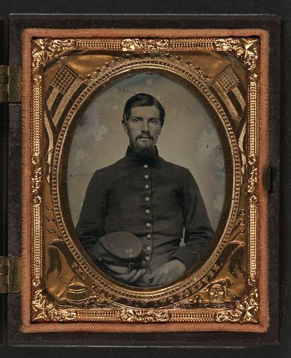 Keywords: library of congress libraryofcongress dc:identifier=http://hdl.loc.gov/loc.pnp/ppmsca.27432 dc:identifier=httphdllocgovlocpnpppmsca27432 xmlns:dc=http://purl.org/dc/elements/1.1/ xmlns:dc=httppurlorgdcelements11 u.s. civil war uscivilwar american civil war americancivilwar the civil war thecivilwar civil war civilwar war between the states warbetweenthestates united states of america unitedstatesofamerica u.s.a. usa the union theunion union the north thenorth yankee yankees soldier 25th regiment 25thregiment company a companya people picture frame photo border indoor [Unidentified soldier in Union uniform with Company A, 25th Regiment forage cap] [between 1861 and 1865] 1 photograph : ninth-plate ambrotype, hand-colored ; 7.6 x 6.5 cm (case) Notes: Title devised by Library staff. Case: Berg, no. 3-292. Gift; Tom Liljenquist; 2010; (DLC/PP-2010:105). Purchased from: Shiloh's Civil War Relics, Shiloh, Tenn., 2002. Subjects: United States.--Army.--People--1860-1870. Soldiers--Union--1860-1870. Military uniforms--Union--1860-1870. United States--History--Civil War, 1861-1865--Military personnel--Union. Format: Portrait photographs--1860-1870. Ambrotypes--Hand-colored--1860-1870. Rights Info: No known restrictions on publication. Repository: Library of Congress, Prints and Photographs Division, Washington, D.C. 20540 USA, hdl.loc.gov/loc.pnp/pp.print Part Of: Ambrotype/Tintype filing series (Library of Congress) (DLC) 2010650518 Liljenquist Family collection (Library of Congress) (DLC) 2010650519 More information about this collection is available at hdl.loc.gov/loc.pnp/pp.lilj Persistent URL: hdl.loc.gov/loc.pnp/ppmsca.27432 Call Number: AMB/TIN no. 2561 [Unidentified soldier in Union uniform with Company A, 25th Regiment forage cap] [between 1861 and 1865] 1 photograph : ninth-plate ambrotype, hand-colored ; 7.6 x 6.5 cm (case) Notes: Title devised by Library staff. Case: Berg, no. 3-292. Gift; Tom Liljenquist; 2010; (DLC/PP-2010:105). Purchased from: Shiloh's Civil War Relics, Shiloh, Tenn., 2002. Subjects: United States.--Army.--People--1860-1870. Soldiers--Union--1860-1870. Military uniforms--Union--1860-1870. United States--History--Civil War, 1861-1865--Military personnel--Union. Format: Portrait photographs--1860-1870. Ambrotypes--Hand-colored--1860-1870. Rights Info: No known restrictions on publication. Repository: Library of Congress, Prints and Photographs Division, Washington, D.C. 20540 USA, hdl.loc.gov/loc.pnp/pp.print Part Of: Ambrotype/Tintype filing series (Library of Congress) (DLC) 2010650518 Liljenquist Family collection (Library of Congress) (DLC) 2010650519 More information about this collection is available at hdl.loc.gov/loc.pnp/pp.lilj Persistent URL: hdl.loc.gov/loc.pnp/ppmsca.27432 Call Number: AMB/TIN no. 2561 |