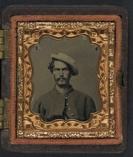 | Keywords: library of congress libraryofcongress dc:identifier=http://hdl.loc.gov/loc.pnp/ppmsca.27460 dc:identifier=httphdllocgovlocpnpppmsca27460 xmlns:dc=http://purl.org/dc/elements/1.1/ xmlns:dc=httppurlorgdcelements11 u.s. civil war uscivilwar american civil war americancivilwar the civil war thecivilwar civil war civilwar war between the states warbetweenthestates united states of america unitedstatesofamerica u.s.a. usa the union theunion union the north thenorth yankee yankees soldier picture frame people photo border [Unidentified soldier in Union uniform and slouch hat] [between 1861 and 1865] 1 photograph : sixteenth-plate tintype, hand-colored ; 5.3 x 4.5 cm (case) Notes: Title devised by Library staff. Case: Berg, no. 3-483. Additional information in collections file. Gift; Tom Liljenquist; 2010; (DLC/PP-2010:105). Purchased from: Cayuga Lake Antiques, Interlaken, N.Y. Subjects: United States.--Army.--People--1860-1870. Soldiers--Union--1860-1870. Military uniforms--Union--1860-1870. United States--History--Civil War, 1861-1865--Military personnel--Union. Format: Portrait photographs--1860-1870. Tintypes--Hand-colored--1860-1870. Rights Info: No known restrictions on publication. Repository: Library of Congress, Prints and Photographs Division, Washington, D.C. 20540 USA, hdl.loc.gov/loc.pnp/pp.print Part Of: Ambrotype/Tintype filing series (Library of Congress) (DLC) 2010650518 Liljenquist Family collection (Library of Congress) (DLC) 2010650519 More information about this collection is available at hdl.loc.gov/loc.pnp/pp.lilj Persistent URL: hdl.loc.gov/loc.pnp/ppmsca.27460 Call Number: AMB/TIN no. 2587 [Unidentified soldier in Union uniform and slouch hat] [between 1861 and 1865] 1 photograph : sixteenth-plate tintype, hand-colored ; 5.3 x 4.5 cm (case) Notes: Title devised by Library staff. Case: Berg, no. 3-483. Additional information in collections file. Gift; Tom Liljenquist; 2010; (DLC/PP-2010:105). Purchased from: Cayuga Lake Antiques, Interlaken, N.Y. Subjects: United States.--Army.--People--1860-1870. Soldiers--Union--1860-1870. Military uniforms--Union--1860-1870. United States--History--Civil War, 1861-1865--Military personnel--Union. Format: Portrait photographs--1860-1870. Tintypes--Hand-colored--1860-1870. Rights Info: No known restrictions on publication. Repository: Library of Congress, Prints and Photographs Division, Washington, D.C. 20540 USA, hdl.loc.gov/loc.pnp/pp.print Part Of: Ambrotype/Tintype filing series (Library of Congress) (DLC) 2010650518 Liljenquist Family collection (Library of Congress) (DLC) 2010650519 More information about this collection is available at hdl.loc.gov/loc.pnp/pp.lilj Persistent URL: hdl.loc.gov/loc.pnp/ppmsca.27460 Call Number: AMB/TIN no. 2587 |