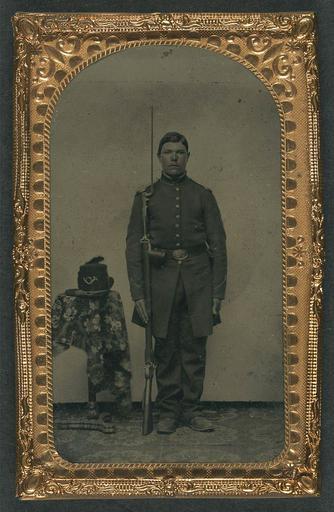 Keywords: library of congress libraryofcongress dc:identifier=http://hdl.loc.gov/loc.pnp/ppmsca.27412 dc:identifier=httphdllocgovlocpnpppmsca27412 xmlns:dc=http://purl.org/dc/elements/1.1/ xmlns:dc=httppurlorgdcelements11 people picture frame photo border [Unidentified soldier in Union frock coat with bayoneted musket next to infantry Hardee hat with plume on table] [between 1861 and 1865] 1 photograph : carte de visite-plate tintype, hand-colored ; 8.7 x 5.5 cm (plate) Notes: Title devised by Library staff. Photograph shows headstand behind soldier's feet. Gift; Tom Liljenquist; 2010; (DLC/PP-2010:105). Subjects: United States.--Army.--People--1860-1870. Soldiers--Union--1860-1870. Military uniforms--Union--1860-1870. Rifles--1860-1870. Bayonets--1860-1870. United States--History--Civil War, 1861-1865--Military personnel--Union. Format: Group portraits--1860-1870. Portrait photographs--1860-1870. Tintypes--Hand-colored--1860-1870. Rights Info: No known restrictions on publication. Repository: Library of Congress, Prints and Photographs Division, Washington, D.C. 20540 USA, hdl.loc.gov/loc.pnp/pp.print Part Of: Ambrotype/Tintype filing series (Library of Congress) (DLC) 2010650518 Liljenquist Family collection (Library of Congress) (DLC) 2010650519 More information about this collection is available at hdl.loc.gov/loc.pnp/pp.lilj Persistent URL: hdl.loc.gov/loc.pnp/ppmsca.27412 Call Number: AMB/TIN no. 2547 [Unidentified soldier in Union frock coat with bayoneted musket next to infantry Hardee hat with plume on table] [between 1861 and 1865] 1 photograph : carte de visite-plate tintype, hand-colored ; 8.7 x 5.5 cm (plate) Notes: Title devised by Library staff. Photograph shows headstand behind soldier's feet. Gift; Tom Liljenquist; 2010; (DLC/PP-2010:105). Subjects: United States.--Army.--People--1860-1870. Soldiers--Union--1860-1870. Military uniforms--Union--1860-1870. Rifles--1860-1870. Bayonets--1860-1870. United States--History--Civil War, 1861-1865--Military personnel--Union. Format: Group portraits--1860-1870. Portrait photographs--1860-1870. Tintypes--Hand-colored--1860-1870. Rights Info: No known restrictions on publication. Repository: Library of Congress, Prints and Photographs Division, Washington, D.C. 20540 USA, hdl.loc.gov/loc.pnp/pp.print Part Of: Ambrotype/Tintype filing series (Library of Congress) (DLC) 2010650518 Liljenquist Family collection (Library of Congress) (DLC) 2010650519 More information about this collection is available at hdl.loc.gov/loc.pnp/pp.lilj Persistent URL: hdl.loc.gov/loc.pnp/ppmsca.27412 Call Number: AMB/TIN no. 2547 |