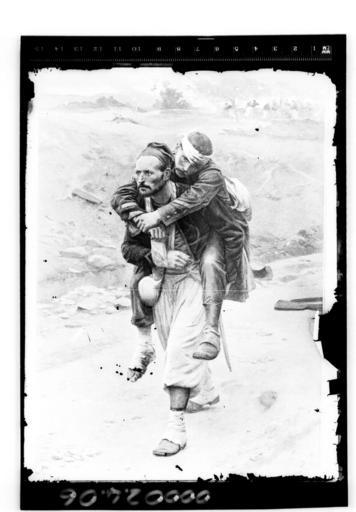 | Keywords: zouave soldier zouave officer zouaveofficer wounded french army frencharmy french blackandwhite monochrome photo border outdoor black and white This is possibly a photograph of a drawing or painting depicting a wounded man being carried on the shoulders of what appears to be a member of the light infantry of the French Army, known as the Zouaves. This particular man is wearing the white trousers and shoes particular to the Zouaves. This photo is part of the Australian National Maritime Museum’s William J Hall collection. The Hall collection provides an important pictorial record of recreational boating in Sydney Harbour, from the 1890s to the 1930s – from large racing and cruising yachts, to the many and varied skiffs jostling on the harbour, to the new phenomenon of motor boating in the early twentieth century. The collection also includes images of the many spectators and crowds who followed the sailing races. The ANMM undertakes research and accepts public comments that enhance the information we hold about images in our collection. This record has been updated accordingly. Object no. 00002406 This is possibly a photograph of a drawing or painting depicting a wounded man being carried on the shoulders of what appears to be a member of the light infantry of the French Army, known as the Zouaves. This particular man is wearing the white trousers and shoes particular to the Zouaves. This photo is part of the Australian National Maritime Museum’s William J Hall collection. The Hall collection provides an important pictorial record of recreational boating in Sydney Harbour, from the 1890s to the 1930s – from large racing and cruising yachts, to the many and varied skiffs jostling on the harbour, to the new phenomenon of motor boating in the early twentieth century. The collection also includes images of the many spectators and crowds who followed the sailing races. The ANMM undertakes research and accepts public comments that enhance the information we hold about images in our collection. This record has been updated accordingly. Object no. 00002406 |