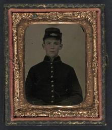 | Keywords: library of congress libraryofcongress dc:identifier=http://hdl.loc.gov/loc.pnp/ppmsca.27353 dc:identifier=httphdllocgovlocpnpppmsca27353 xmlns:dc=http://purl.org/dc/elements/1.1/ xmlns:dc=httppurlorgdcelements11 u.s. civil war uscivilwar american civil war americancivilwar the civil war thecivilwar civil war civilwar war between the states warbetweenthestates united states of america unitedstatesofamerica u.s.a. usa the union theunion union the north thenorth yankee yankees soldier picture frame people photo border [Unidentified young soldier in Union shell jacket and forage cap] [between 1861 and 1865] 1 photograph : ninth-plate ambrotype, hand-colored ; 7.3 x 6.2 cm (case) Notes: Title devised by Library staff. Case: Rinhart, no. 54. Gift; Tom Liljenquist; 2010; (DLC/PP-2010:105). Subjects: United States.--Army--People--1860-1870. Soldiers--Union--1860-1870. Military uniforms--Union--1860-1870. United States--History--Civil War, 1861-1865--Military personnel--Union. Format: Portrait photographs--1860-1870. Ambrotypes--Hand-colored--1860-1870. Rights Info: No known restrictions on publication. Repository: Library of Congress, Prints and Photographs Division, Washington, D.C. 20540 USA, hdl.loc.gov/loc.pnp/pp.print Part Of: Ambrotype/Tintype filing series (Library of Congress) (DLC) 2010650518 Liljenquist Family collection (Library of Congress) (DLC) 2010650519 More information about this collection is available at hdl.loc.gov/loc.pnp/pp.lilj Persistent URL: hdl.loc.gov/loc.pnp/ppmsca.27353 Call Number: AMB/TIN no. 2488 [Unidentified young soldier in Union shell jacket and forage cap] [between 1861 and 1865] 1 photograph : ninth-plate ambrotype, hand-colored ; 7.3 x 6.2 cm (case) Notes: Title devised by Library staff. Case: Rinhart, no. 54. Gift; Tom Liljenquist; 2010; (DLC/PP-2010:105). Subjects: United States.--Army--People--1860-1870. Soldiers--Union--1860-1870. Military uniforms--Union--1860-1870. United States--History--Civil War, 1861-1865--Military personnel--Union. Format: Portrait photographs--1860-1870. Ambrotypes--Hand-colored--1860-1870. Rights Info: No known restrictions on publication. Repository: Library of Congress, Prints and Photographs Division, Washington, D.C. 20540 USA, hdl.loc.gov/loc.pnp/pp.print Part Of: Ambrotype/Tintype filing series (Library of Congress) (DLC) 2010650518 Liljenquist Family collection (Library of Congress) (DLC) 2010650519 More information about this collection is available at hdl.loc.gov/loc.pnp/pp.lilj Persistent URL: hdl.loc.gov/loc.pnp/ppmsca.27353 Call Number: AMB/TIN no. 2488 |