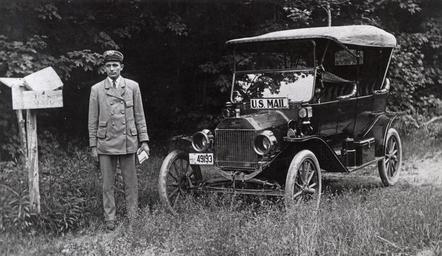 Keywords: smithsonian institution smithsonianinstitution usps mailman rural carrier ruralcarrier public servant publicservant government model t modelt mailbox convertable boy car old black and white blackandwhite mail letter carrier lettercarrier automobile old car photo oldcarphoto old mail car oldmailcar postal carrie postalcarrie postman delivery u.s. mail usmail postal old mail truck oldmailtruck old fashion mail truck oldfashionmailtruck harbor springs harborsprings michigan 1914 national postal museum nationalpostalmuseum mail across the commons mailacrossthecommons blackandwhite black and white Description: Rural carriers were not required to wear uniforms. A few, such as this unidentified carrier, purchased and wore city carrier uniforms along their routes. The carrier is posed between a rural mailbox and his Ford automobile. Unlike city carriers, rural letter carriers were required to supply their own transportation for making their daily rounds. Creator/Photographer: Unidentified photographer Medium: Black and white photographic print Geography: USA Date: 1925 Collection: U.S. Mail Trucks Repository: National Postal Museum Accession number: A.2006-75 Persistent URL: arago.si.edu/index.asp?con=2&cmd=1&id=194327 View more collections from the Smithsonian Institution. Description: Rural carriers were not required to wear uniforms. A few, such as this unidentified carrier, purchased and wore city carrier uniforms along their routes. The carrier is posed between a rural mailbox and his Ford automobile. Unlike city carriers, rural letter carriers were required to supply their own transportation for making their daily rounds. Creator/Photographer: Unidentified photographer Medium: Black and white photographic print Geography: USA Date: 1925 Collection: U.S. Mail Trucks Repository: National Postal Museum Accession number: A.2006-75 Persistent URL: arago.si.edu/index.asp?con=2&cmd=1&id=194327 View more collections from the Smithsonian Institution. |