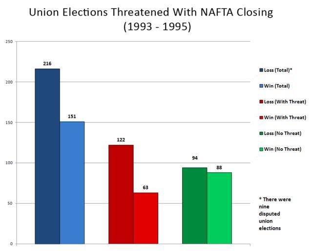 Keywords: Union Elections Threatened With NAFTA Closing (1993-1995).gif en wikipedia 2012 January 19 Outcome of union elections based on threats to move plants because of en NAFTA Based on Kate Bronfenbrenner's study 'http //digitalcommons ilr cornell edu/cgi/viewcontent cgi article 1000 amp;context intl Final Report The Effects of Plant Closing or Threat of Plant Closing on the Right of Workers to Organize' Originally uploaded on en wikipedia 04 00 16 May 2010 UTC Uploaded on Commons at 2012-01-19 20 24 29 UTC /Originally uploaded at 2010-05-16 04 00 08 CartoonDiablo own work released under Public Domain Transferred by Cloudbound/Originally uploaded by CartoonDiablo CartoonDiablo en w en File Union Elections Threatened With NAFTA Closing 1993-1995 SVG Original upload log page en wikipedia Union_Elections_Threatened_With_NAFTA_Closing_ 281993-1995 29 gif Upload date User Bytes Dimensions Comment 2010-05-16 04 00 08 CartoonDiablo 18032 914×734 <small><nowiki> Outcome of union elections based on threats to move plants because of NAFTA Based on Kate Bronfenbrenner's study 'http //digitalcommons ilr cornell edu/cgi/viewcontent cgi</nowiki></small> Unidentified graphs |
