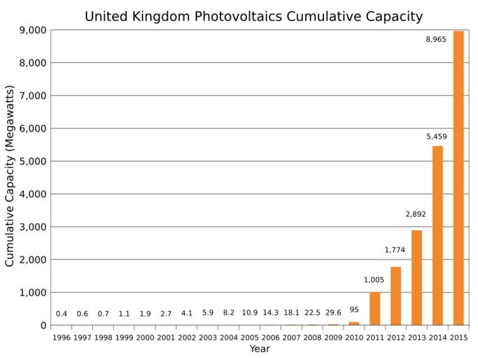 Keywords: United Kingdom Photovoltaics Installed Capacity.svg translate yes en Cumulative installed photovoltaics in the United Kingdom from 1996 to 2015 Data from https //www gov uk/government/statistics/solar-photovoltaics-deployment DECC http //www theguardian com/environment/2015/jan/29/solar-power-in-the-uk-almost-doubled-in-2014 de Kumulative Leistung der im Vereinigten Königreich installierten Sonnenenergie-Anlagen 1996 bis 2015 2014-12-01 own Delphi234 other versions cc-zero Solar energy in the United Kingdom Photovoltaic power statistics |