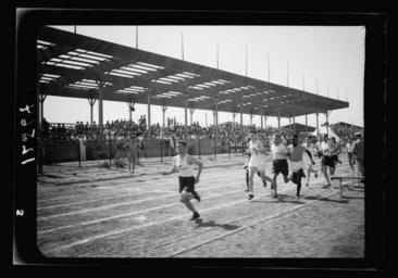 | Keywords: United Services Athletic meeting at Tel Aviv Maccabiah Stadium on Sat. May 2, 1942. General view of grand stand & runners.jpg en United Services Athletic meeting at Tel Aviv Maccabiah Stadium on Sat May 2 1942 General view of grand stand runners 1942-05-02 LOC-image matpc 21242 http //www loc gov/pictures/related/ fi name q Matson 20Photo 20Service Matson Photo Service photographer Custom license marker 2014 02 18 PD-Matson Uploaded with UploadWizard Maccabiah Stadium Sports in Israel Sprinting |