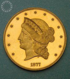 Keywords: legendary coins legendarycoins numismatics money smithsonian probably public domain probablypublicdomain indoor round circle ancient SI Neg. 2005-27356. Date: 9/1/2005...Patterns and experimental pieces form one of the most interesting groups of specimens associated with official coinage. It was customary for the Mint to provide samples of a proposed coin. More patterns were made in 1877 than in any other year. The Gold Rush in California prompted the merchants and bankers in San Francisco to lobby Congress for gold pieces of high denomination for quick counting purposes when a branch mint was established in their city in 1854. The design for the proposed large coin was similar to the $20 double eagle. Senator William Gwin of California introduced a bill for the adoption of this coin. His bill passed the Senate but failed to win approval in the House of Representatives. Although the coin was not approved, the proposal for such a large coin was feasible only after enough of the precious metal was available with the discovery of vast quantities in California. The depiction of Liberty on the obverse was a familiar symbol of national identity by 1877 for Americans..Click here to view the obverse...Credit: Tom Mulvaney (Smithsonian Institution) SI Neg. 2005-27356. Date: 9/1/2005...Patterns and experimental pieces form one of the most interesting groups of specimens associated with official coinage. It was customary for the Mint to provide samples of a proposed coin. More patterns were made in 1877 than in any other year. The Gold Rush in California prompted the merchants and bankers in San Francisco to lobby Congress for gold pieces of high denomination for quick counting purposes when a branch mint was established in their city in 1854. The design for the proposed large coin was similar to the $20 double eagle. Senator William Gwin of California introduced a bill for the adoption of this coin. His bill passed the Senate but failed to win approval in the House of Representatives. Although the coin was not approved, the proposal for such a large coin was feasible only after enough of the precious metal was available with the discovery of vast quantities in California. The depiction of Liberty on the obverse was a familiar symbol of national identity by 1877 for Americans..Click here to view the obverse...Credit: Tom Mulvaney (Smithsonian Institution) |