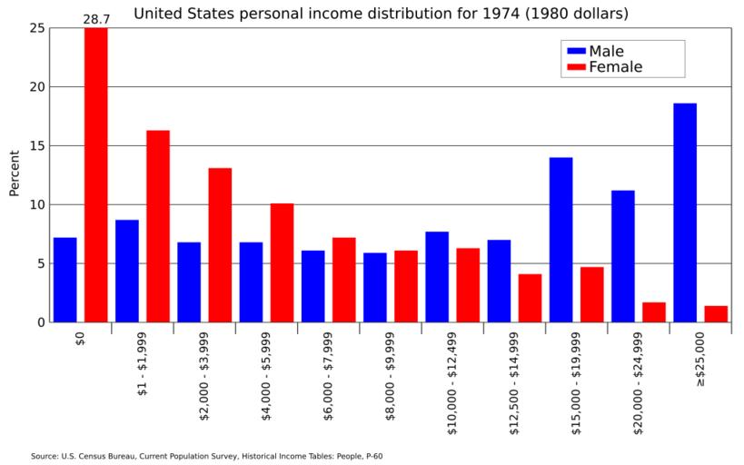 | Keywords: United States personal income by sex in 1980 dollars-1974.svg translate yes en Distribution of personal income by sex in the United States in 1974 in 1980 dollars Source U S Census Bureau Current Population Survey Historical Income People https //www2 census gov/prod2/popscan/p60-132 pdf P-60 Table 44 pgs 138-140 2016-05-05 own Delphi234 other versions Note wikitable - 1980 dollars 2014 dollars - 2 000 5 746 - 4 000 11 492 - 6 000 17 238 - 8 000 22 984 - 10 000 28 730 - 12 500 35 913 - 15 000 43 095 - 20 000 57 460 - 25 000 71 825 cc-zero Income distribution in the United States Personal income in the United States |