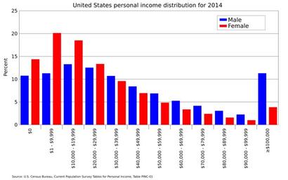 | Keywords: United States personal income by sex-2014.svg translate yes en Distribution of personal income by sex in the United States in 2014 Source U S Census Bureau Current Population Survey Selected Characteristics of People 15 Years and Over by Total Money Income Work Experience Race Hispanic Origin and Sex https //www census gov/data/tables/time-series/demo/income-poverty/cps-pinc/pinc-01 html Table PINC-01 2016-08-16 own Delphi234 other versions cc-zero Income distribution in the United States Personal income in the United States 2014 in the United States |