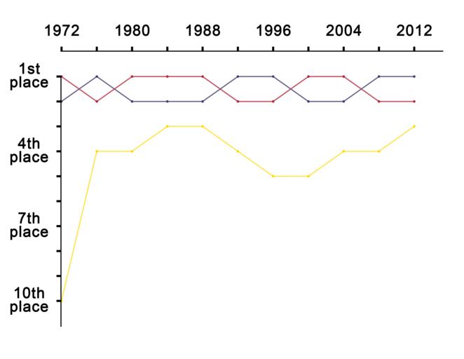 Keywords: United States presidential election ordinal results line graph.png Key FFD900 Libertarian Party 1px AAAAAA solid 3C3B6E Democratic Party 1px AAAAAA solid B22234 Republican Party 1px AAAAAA solid Note The graph does not note it but although George W Bush received more electoral votes than Al Gore in 2000 the latter received more raw votes alexpeak com 22 March 2016 allixpeeke 200px Bar graph 350px Expanded bar graph 175px Expanded line graph Cc-zero United States presidential election statistics United States presidential election 1972 United States presidential election 1976 United States presidential election 1980 United States presidential election 1984 United States presidential election 1988 United States presidential election 1992 United States presidential election 1996 United States presidential election 2000 United States presidential election 2004 United States presidential election 2008 Libertarian Party presidential graphs United States Libertarian Party 1972 presidential campaign United States Libertarian Party 1976 presidential campaign United States Libertarian Party 1980 presidential campaign United States Libertarian Party 1984 presidential campaign United States Libertarian Party 1988 presidential campaign United States Libertarian Party 1992 presidential campaign United States Libertarian Party 1996 presidential campaign United States Libertarian Party 2000 presidential campaign United States Libertarian Party 2004 presidential campaign United States Libertarian Party 2008 presidential campaign United States Libertarian Party 2012 presidential campaign United States Democratic Party presidential graphs United States United States Democratic Party 1972 presidential campaign United States Democratic Party 1976 presidential campaign United States Democratic Party 1980 presidential campaign United States Democratic Party 1984 presidential campaign United States Democratic Party 1988 presidential campaign United States Democratic Party 1992 presidential campaign United States Democratic Party 1996 presidential campaign Al Gore presidential campaign 2000 United States Democratic Party 2004 presidential campaign United States Democratic Party 2008 presidential campaign United States Democratic Party 2012 presidential campaign Republican Party presidential graphs United States United States Republican Party 1972 presidential campaign United States Republican Party 1976 presidential campaign United States Republican Party 1980 presidential campaign United States Republican Party 1984 presidential campaign United States Republican Party 1988 presidential campaign United States Republican Party 1992 presidential campaign United States Republican Party 1996 presidential campaign George W Bush presidential campaign 2000 George W Bush presidential campaign 2004 United States Republican Party 2008 presidential campaign United States Republican Party 2012 presidential campaign Political line charts Charts in English Electoral timelines of the United States of America Gary Johnson graphs |