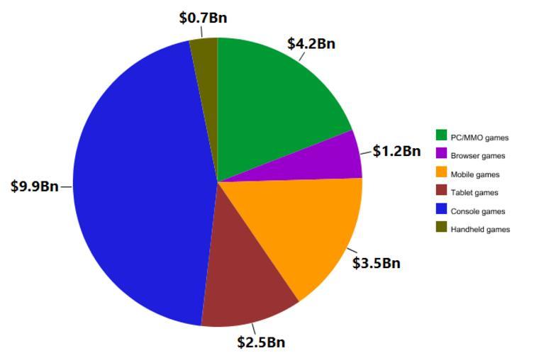 | Keywords: United States video game market per platform 2015.png en Pie graph of the video game market in the United States of America in billions of US dollars in 2015 Console gaming is the largest segmant of the US game market followed by PC and mobile Handheld gaming only takes up a small portion of the market Newzoo 2015 Global Games Market Report Premium cite journal USA China Battle for 1 Top Games Market Games Sector Report 2015 Casual Games Association 2015-02-04 Chart by User Maplestrip 2015-10-03 own Maplestrip other versions cc-zero Uploaded with UploadWizard Video game markets |