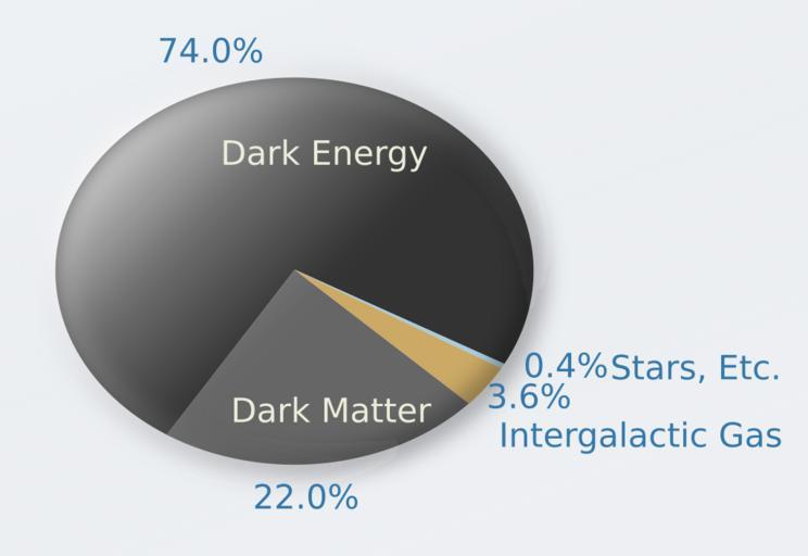 Keywords: UniverseComposition.svg dark matter making up 22 of the mass of the universe and dark energy making up 74 with 'normal' matter making up only 0 4 of the mass of the universe 2014-07-19 21 22 29 own - Derived from jpg version Aflafla1 thumb DarkMatterPie jpg v cc-zero Uploaded with UploadWizard Cosmology Dark matter |