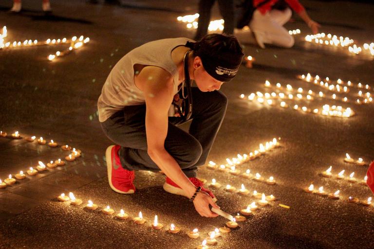 Keywords: university student candle candlelight square prayer love lonely youth man a person party warm