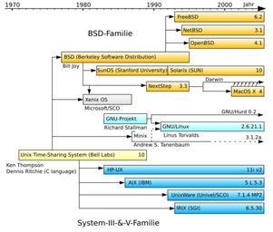 Keywords: Unix timeline.de.svg English This picture shows the relations between several Unix systems in German<br />Deutsch Dieses Bild stellt die Abstammung der Unix-Systeme voneinander dar Deutsche à bersetzung Original image Image Unix png and Image Unix history svg Original version 08/05/2005<br />New version 02/12/2007 Guillem Wereon Hotmocha copied from old version's history <br />Christoph S redrew the image with Inkscape <br />Ysangkok touched up the redrawn image <br />syrcro Translation Original image was public domain Unix timelines |