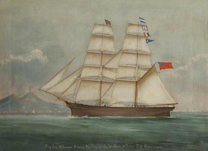 Keywords: Unknown painter - Brig 'Jane Williamson' Entering the Bay of Naples.jpg author or otherdate century 19 century 20 Brig 'Jane Williamson' entering Bay of Naples with smoking Vesuvius in background on March 19 1898 Master T W Karran 'Jane Williamson' was a 200-ton brig registered at Castletown Isle of Man 1898 oil canvas cm 43 64 5 Manx National Heritage Isle of Man accession number 1992-0179 object history credit line http //www bbc co uk/arts/yourpaintings/paintings/brig-jane-williamson-entering-the-bay-of-naples BBC - Your Paintings PD-Art-100 Jane Williamson ship 1870 19th-century sailing ships in paintings Images from BBC Your Paintings History of Naples |
