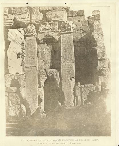 | Keywords: Unknown site in Baalbek, Brooklyn Museum Archives.jpg Photograph en Unknown site Baalbek Syria Lebanon 1905 Published photograph 2 copies Caption reads Fig 17 - the entasis in Roman pilasters at Baalbek Syria The date is second century of our era Brooklyn Museum Archives Goodyear Archival Collection S03_02_01_029 image 8 depicted people depicted place before 1923 Institution Brooklyn Museum object history exhibition history credit line accession number Brooklyn Museum Brooklyn_Museum-no_known_restrictions PD-old-auto 1923 Historical images of Baalbek Photographs from the Goodyear Archival Collection S03 02 01 029 image 8 |